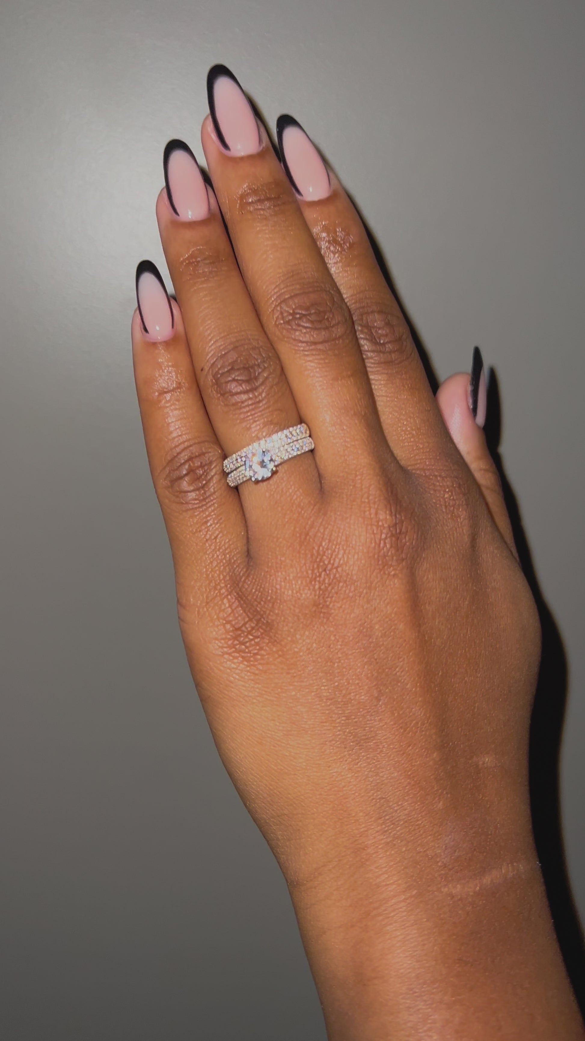 Introducing 'The Adrianna' engagement ring set, crafted from premium 925 sterling silver and featuring a stunning .75 carat 5A cubic zirconia stone. This two-ring set offers the perfect combination of elegance and practicality, designed for everyday wear or as a stylish alternative when traveling. With its beautiful design and sparkling stones, this set is perfect for any occasion, ensuring you always shine without compromising comfort or durability.