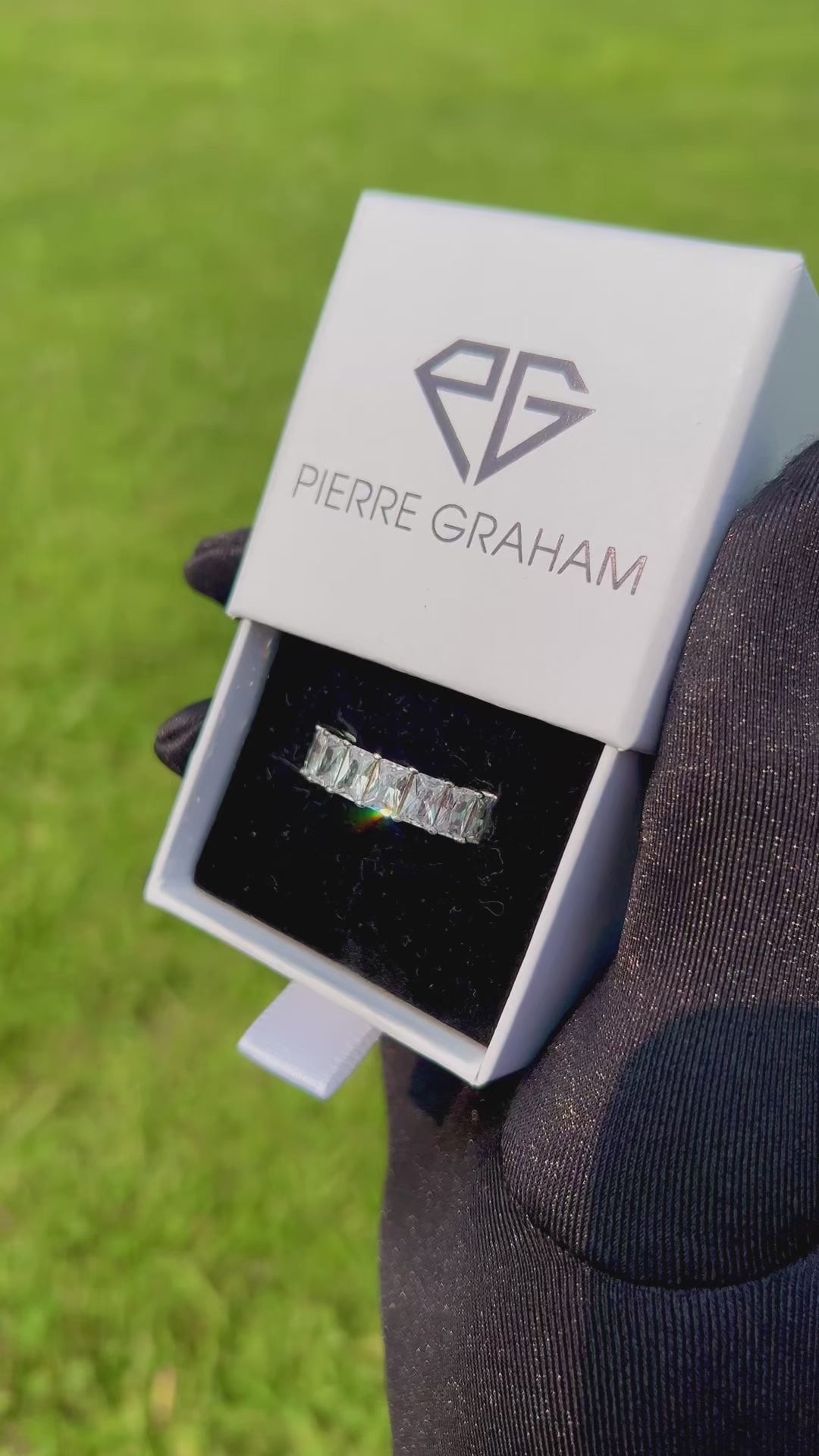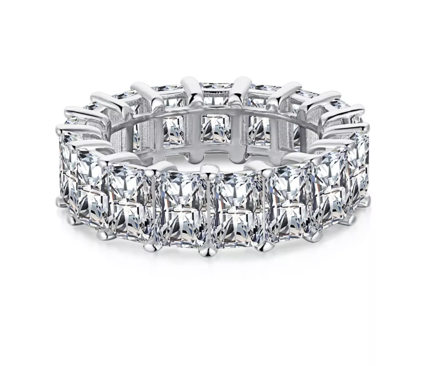 PG Radiant Emerald Cut CZ Eternity Band in Silver