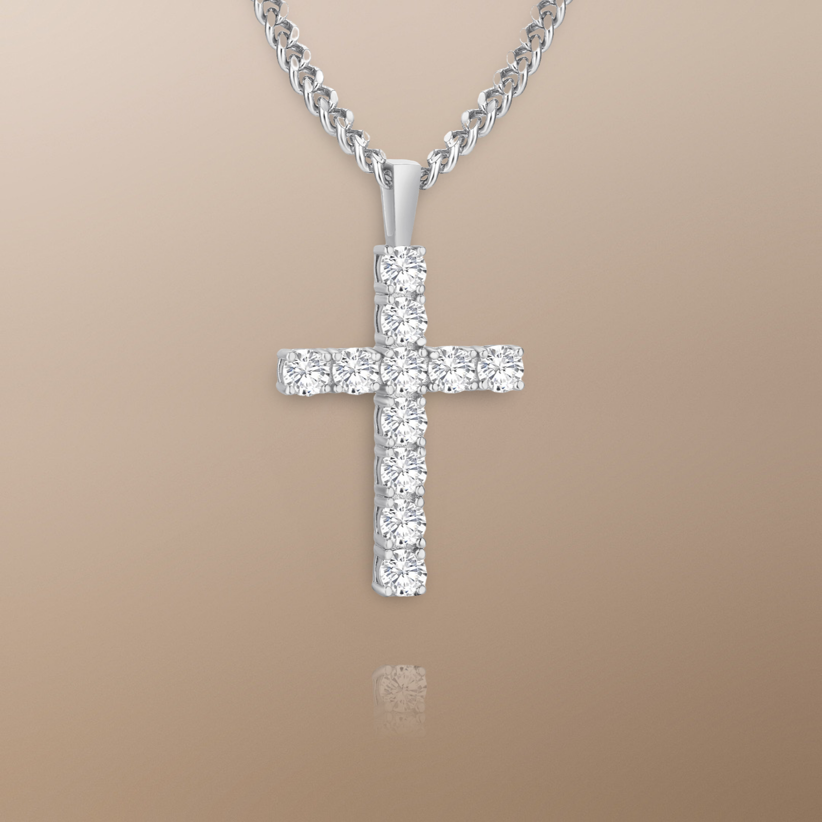 Draped in the allure of 925 sterling silver, our VVS1 1.10ct Moissanite Cross Pendant Necklace on a 2mm Cuban chain seamlessly blends spirituality and a timeless design.