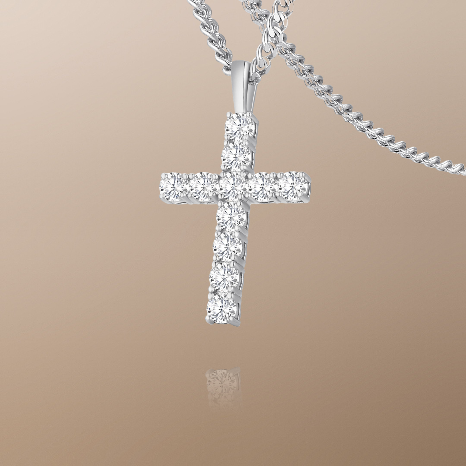 Moissanite Cross Pendant Chain Necklace in White Gold